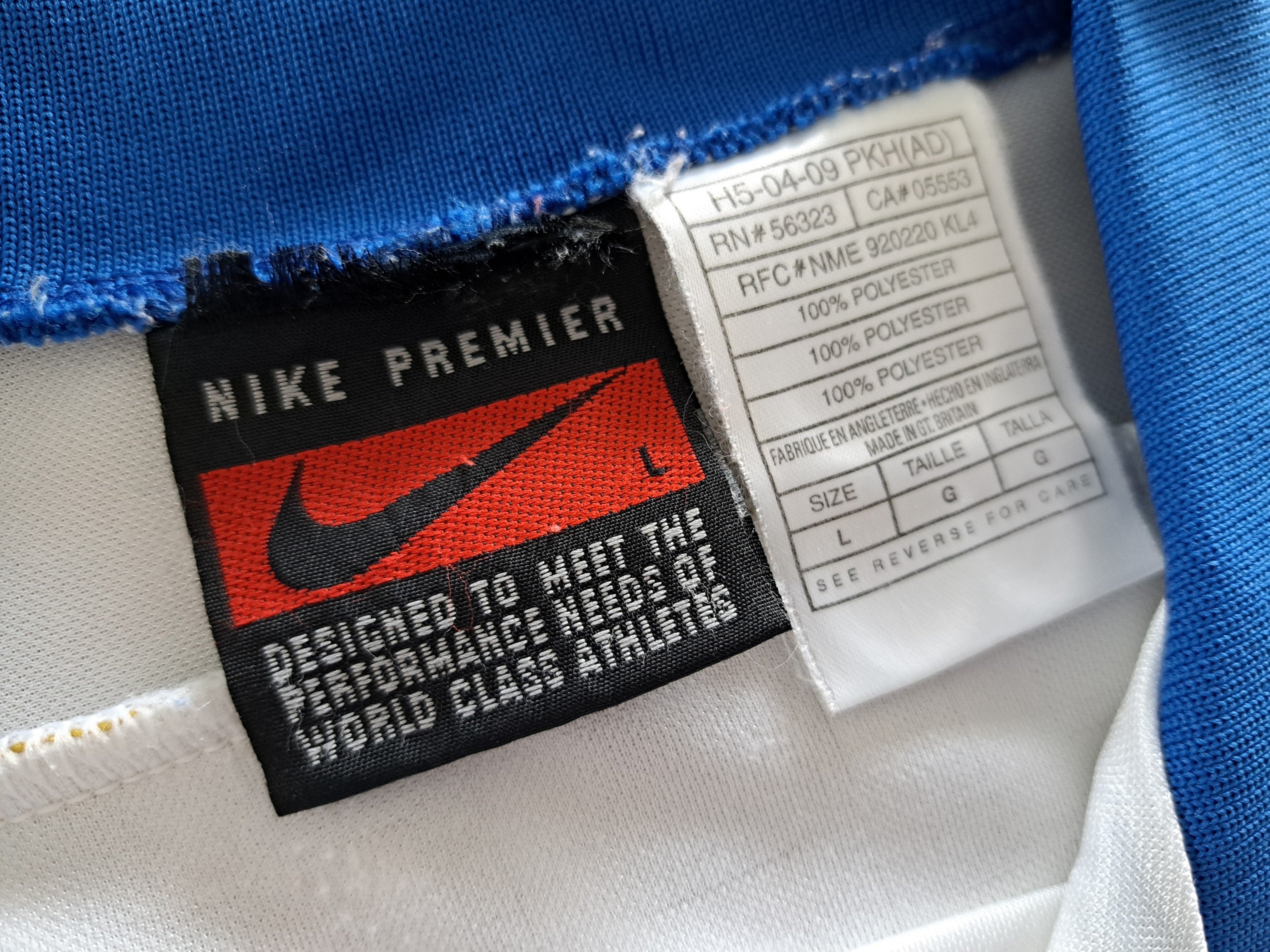 The condition of this original football jersey is 8/10 - Excellent. A little wear to the size label inside the collar. A few little bobbles & pulls on the lower front (see photos).