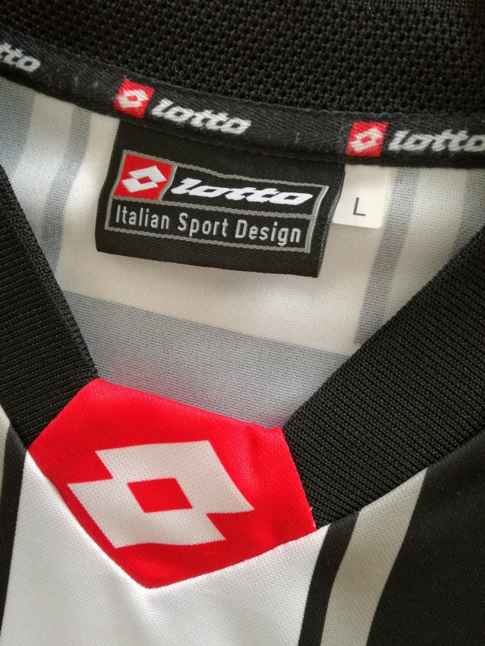 Official Lotto Juventus football training shirt from the 2002/03 season. Complete with a printed Scudetto shield (Serie A champions) on the chest.