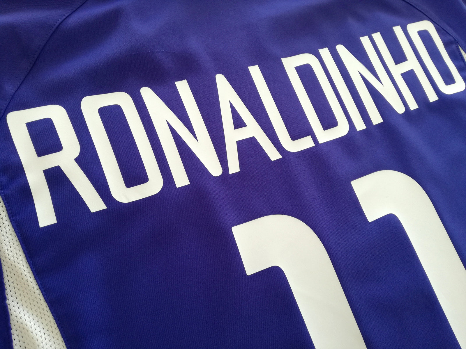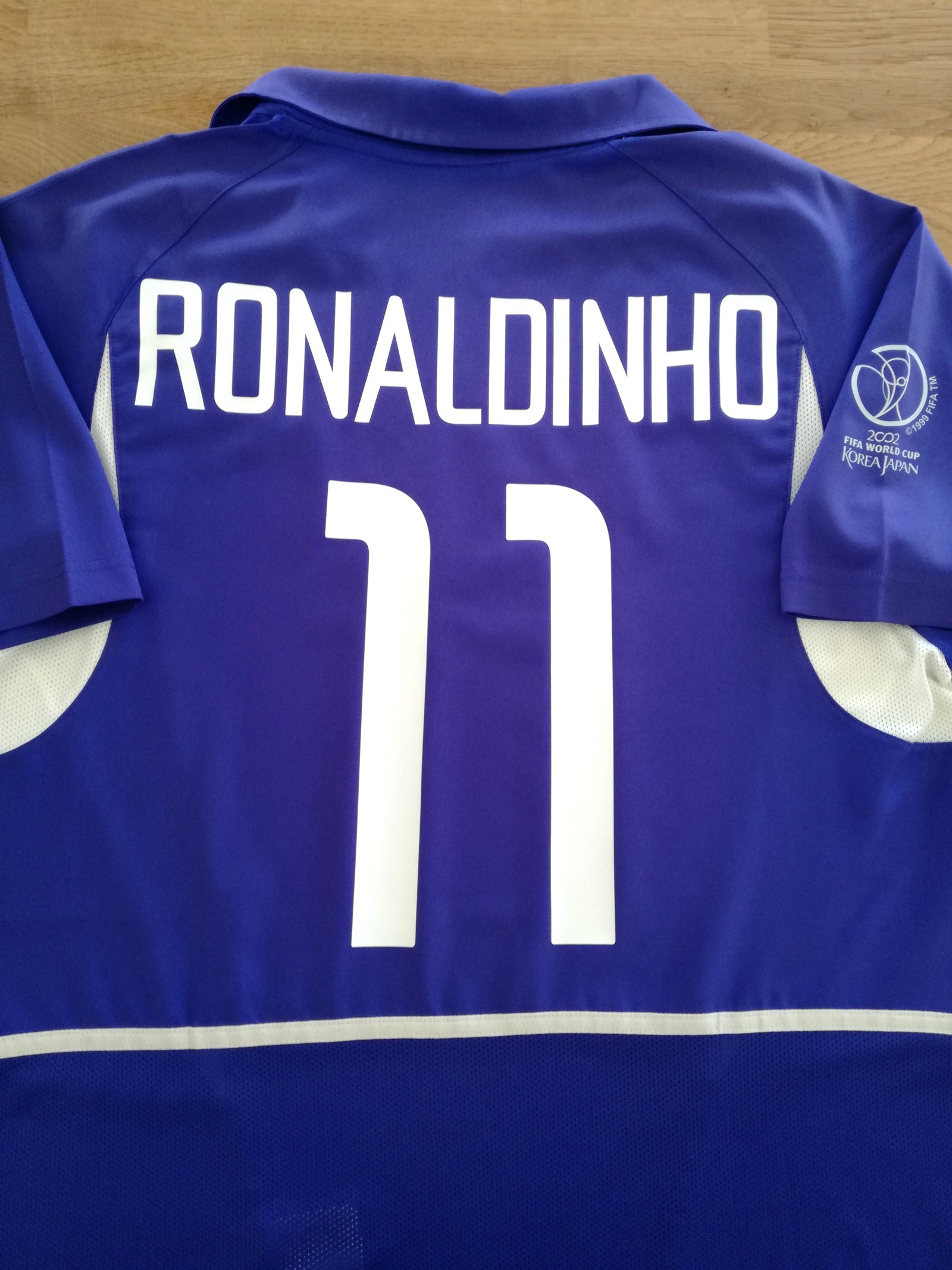 Official Nike Brazil away football shirt from the 2002 international tournament. Complete with Ronaldinho #11 on the front & back of the shirt in original lettering and FIFA World Cup 2002 patch on the sleeve.