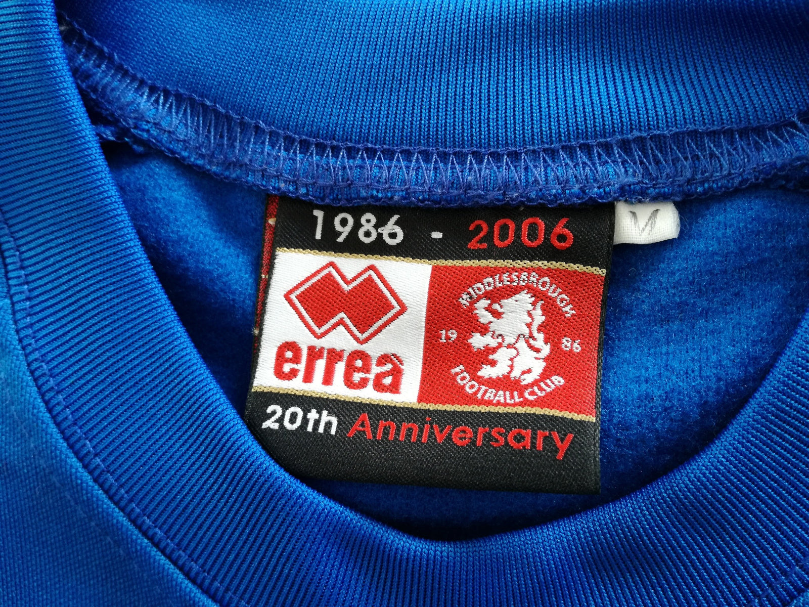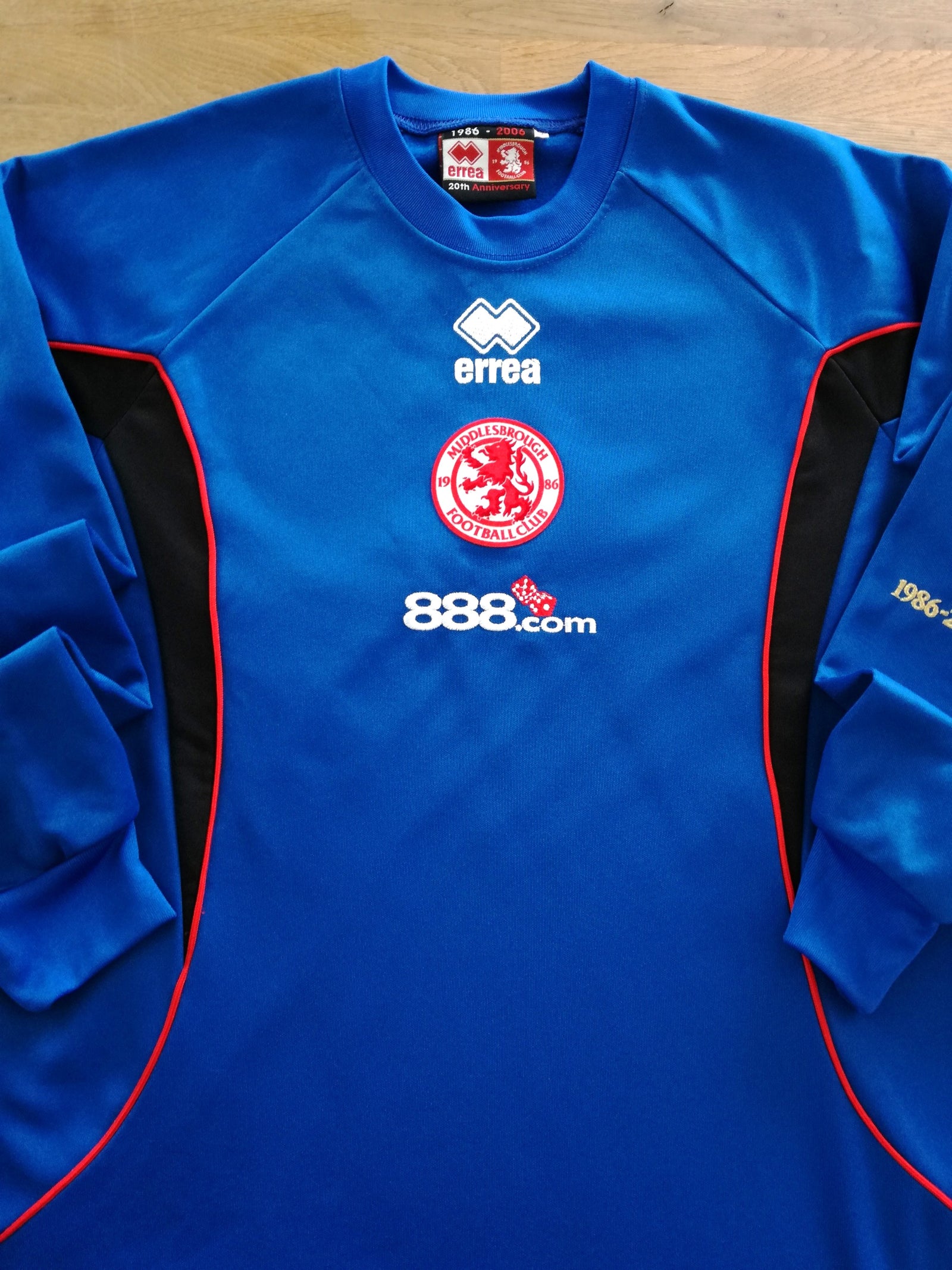 Official Errea Middlesbrough long sleeved football training top from the 2006/07 season. Complete with '1986-2006 20th anniversary' details on the sleeve (celebrating the club's reformation in 1986).
