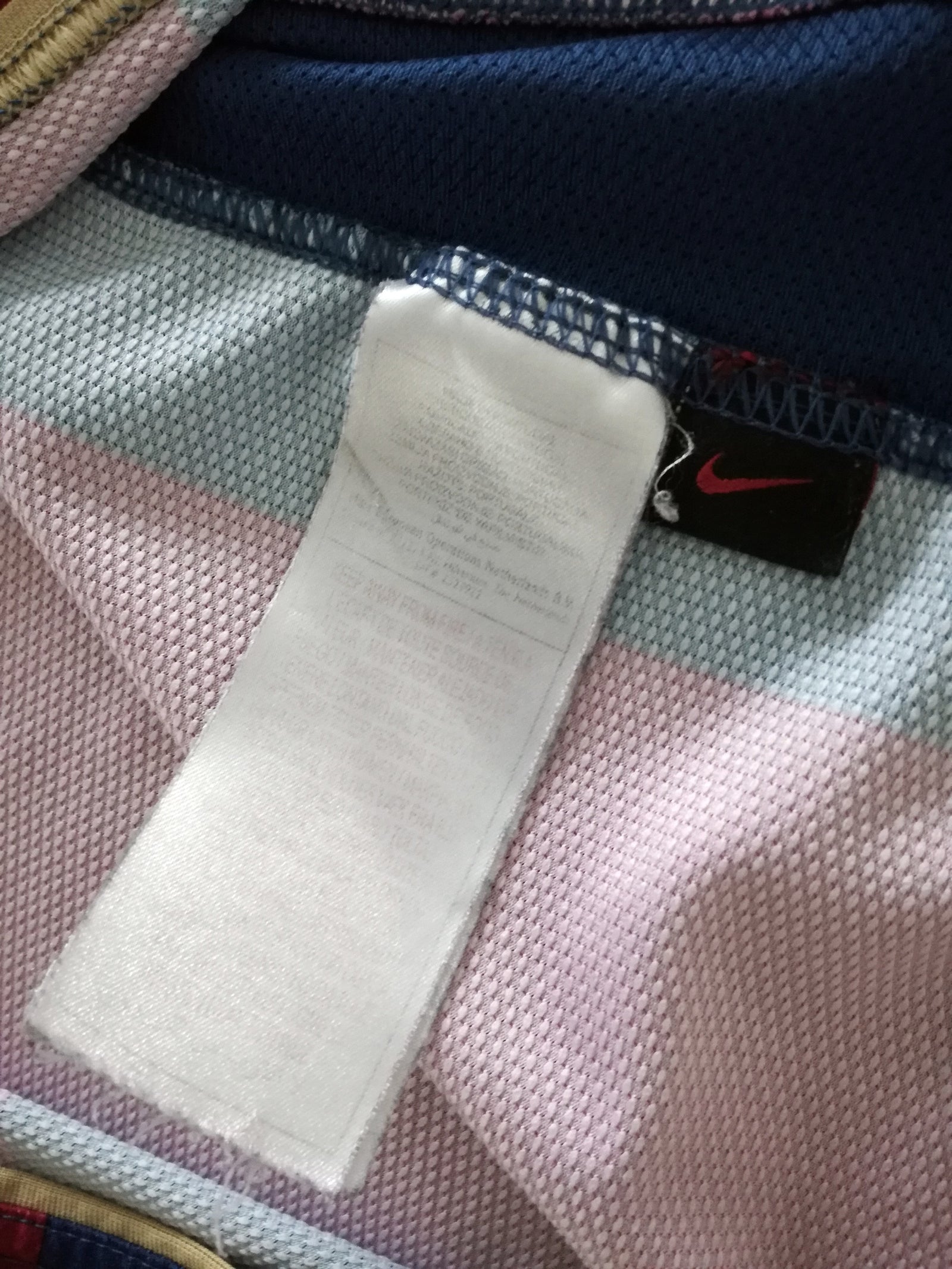 Condition: 7/10 Good. Wear to the sponsor on the chest. Wear to the small motif on the rear of the collar