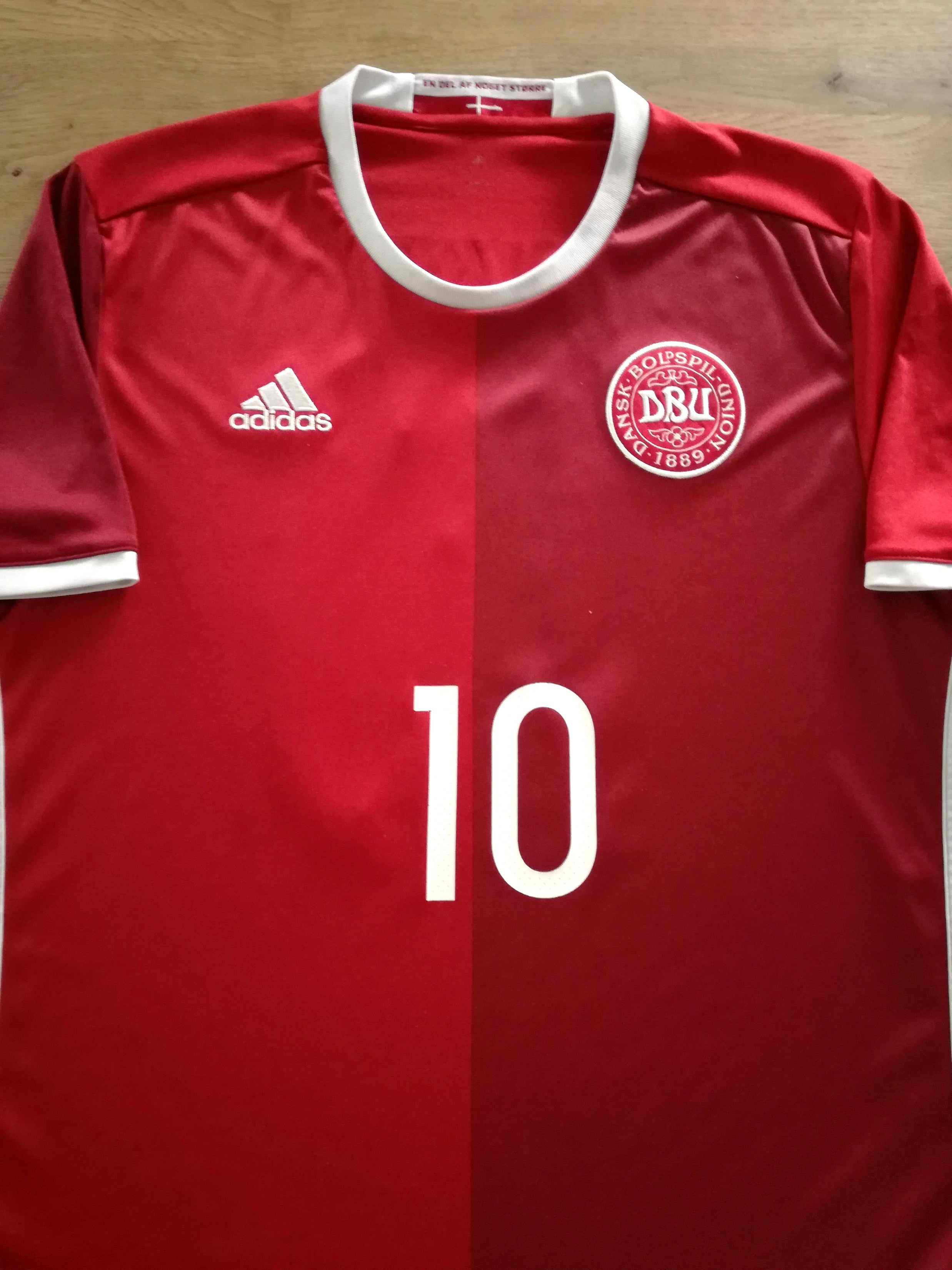 Official Adidas Denmark home football shirt from the 2015/16 season. Complete with Eriksen #10 on the front & back of the shirt in original lettering.