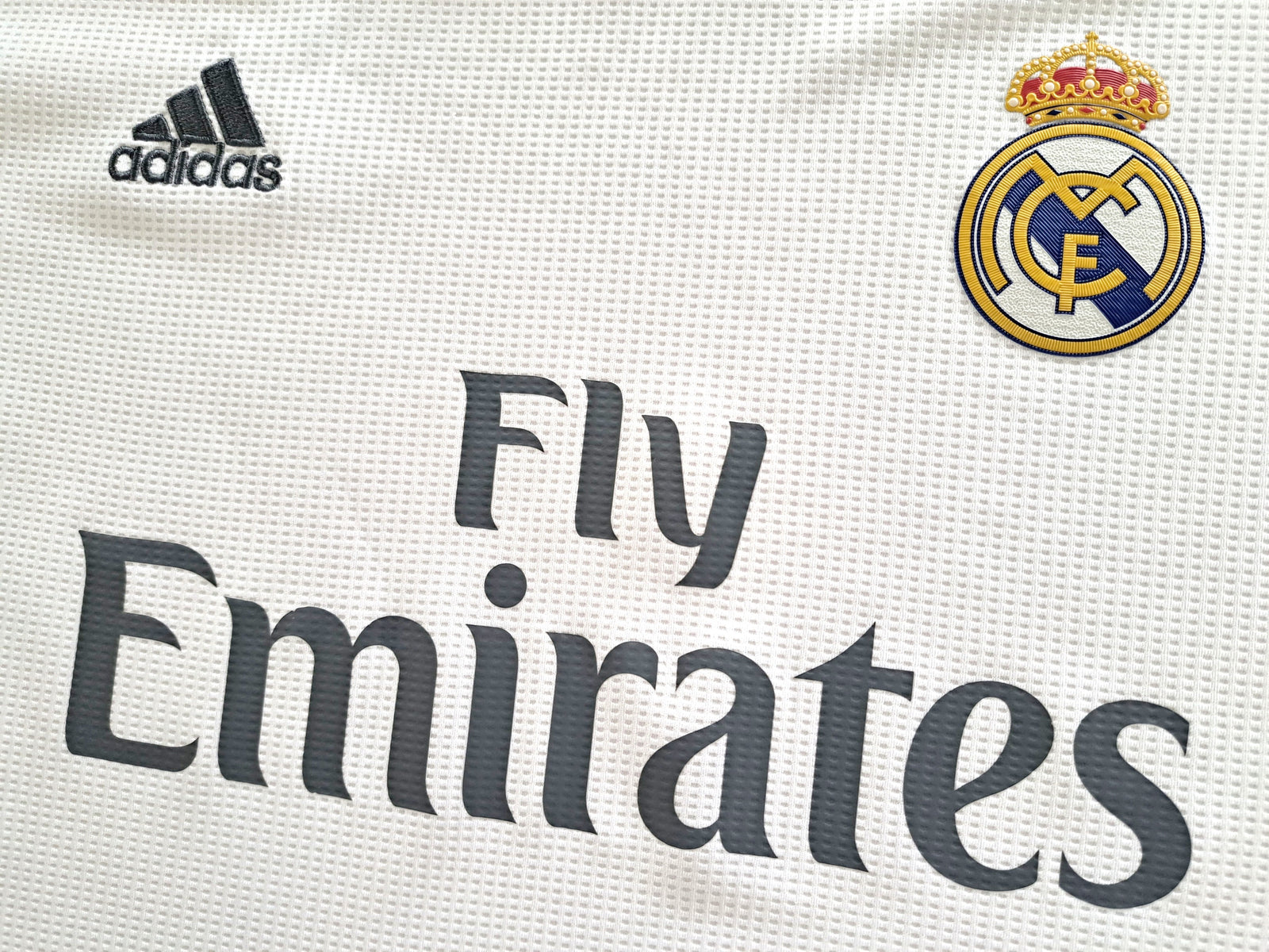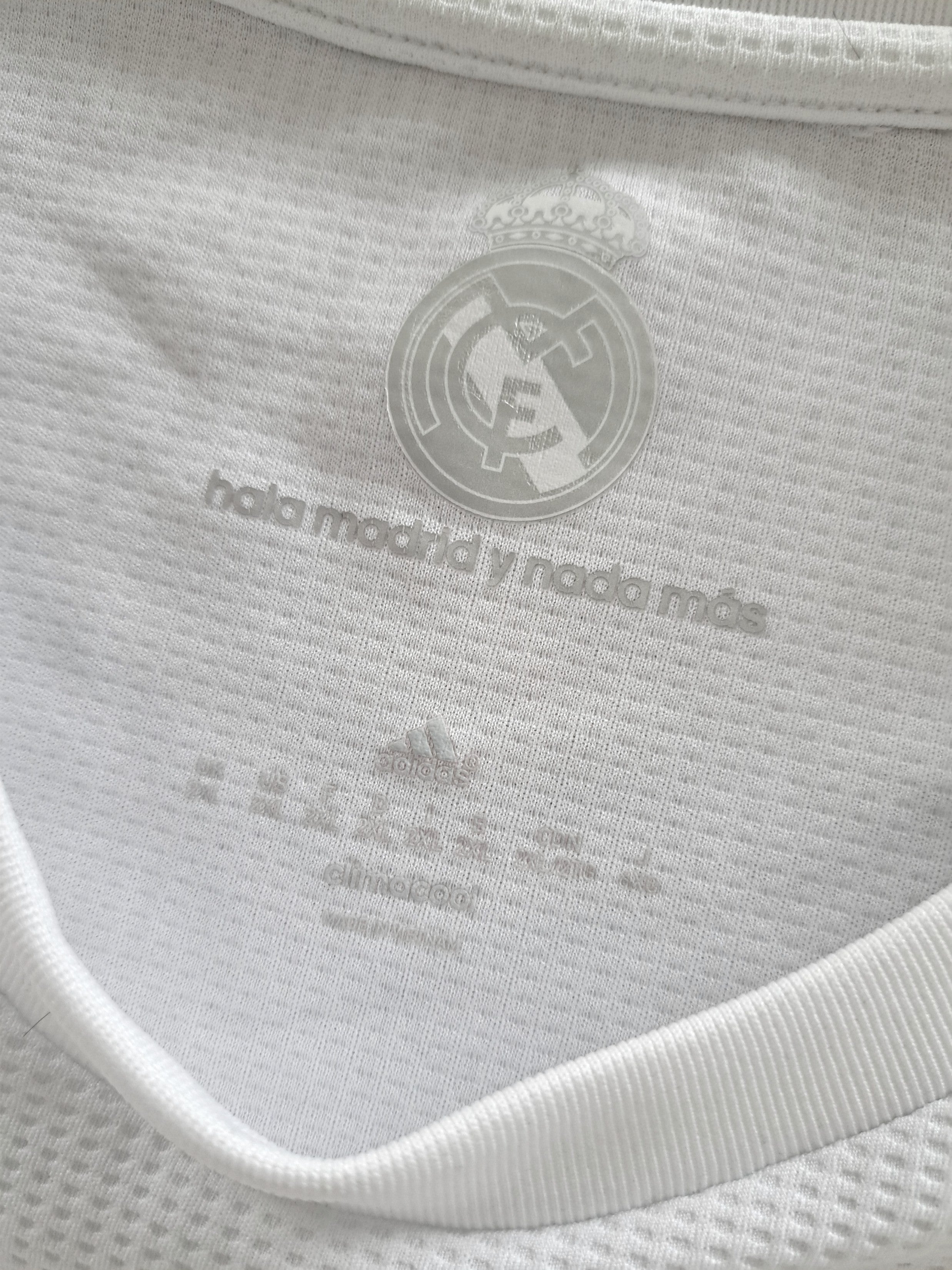 Official Adidas Real Madrid home football shirt from the 2015/16 season. Complete with original Champions League & ten times European Cup winners patches on the sleeves.