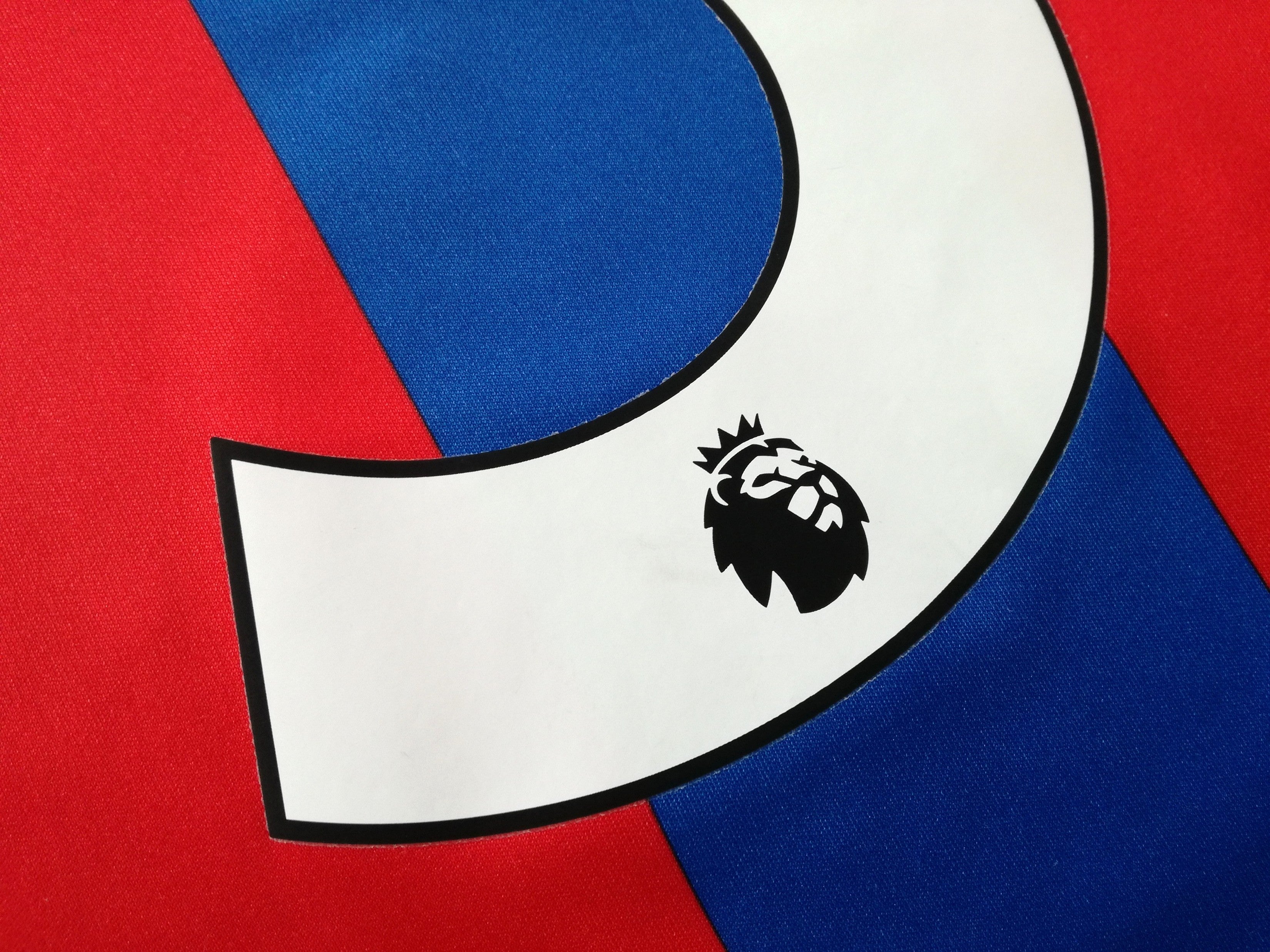 Official Macron Crystal Palace home football shirt from the 2017/18 season. Complete with #3 on the back of the shirt in original Premier League numbering.