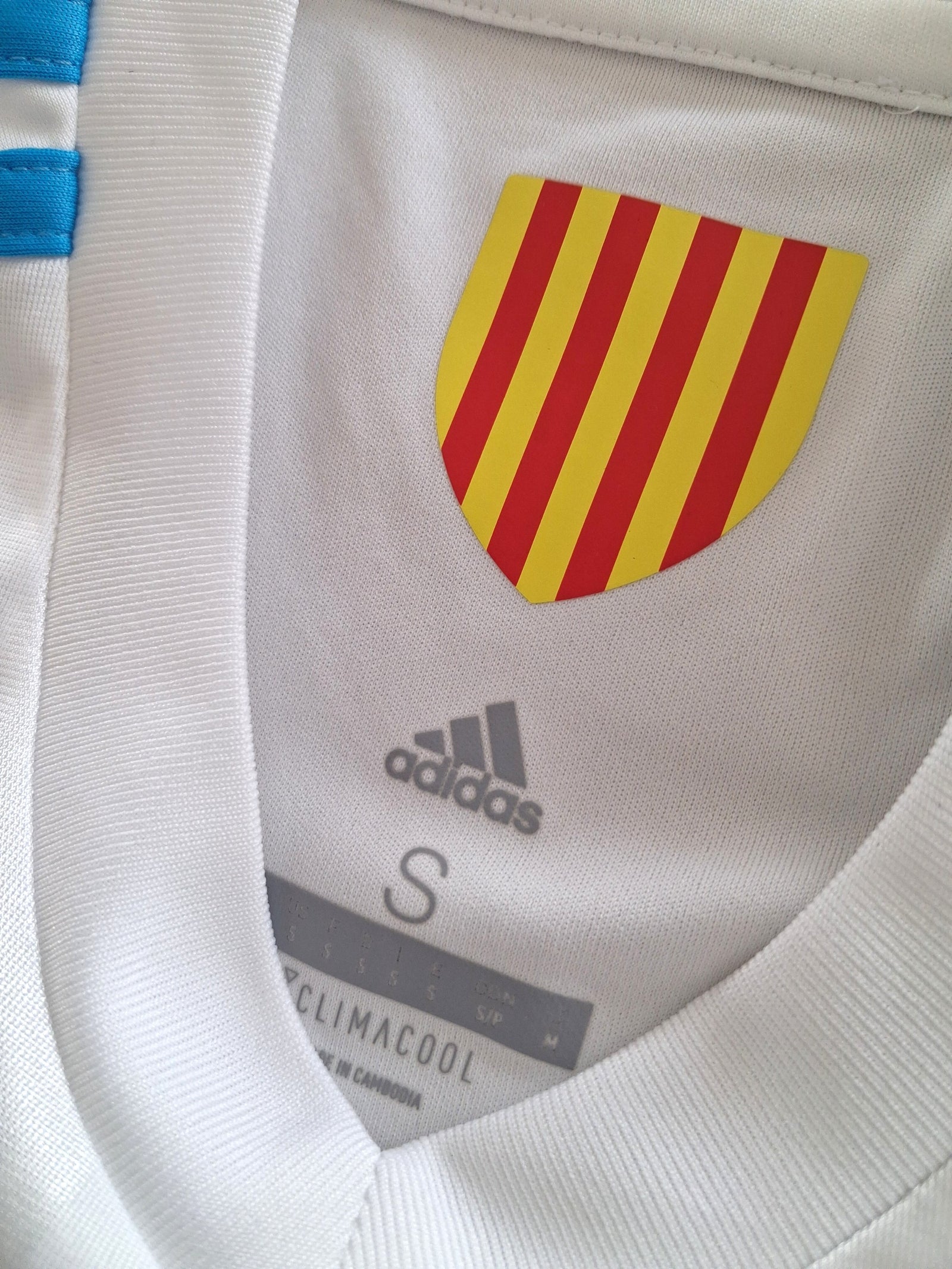 Official Adidas Olympique Marseille home football shirt from the 2017/18 season.