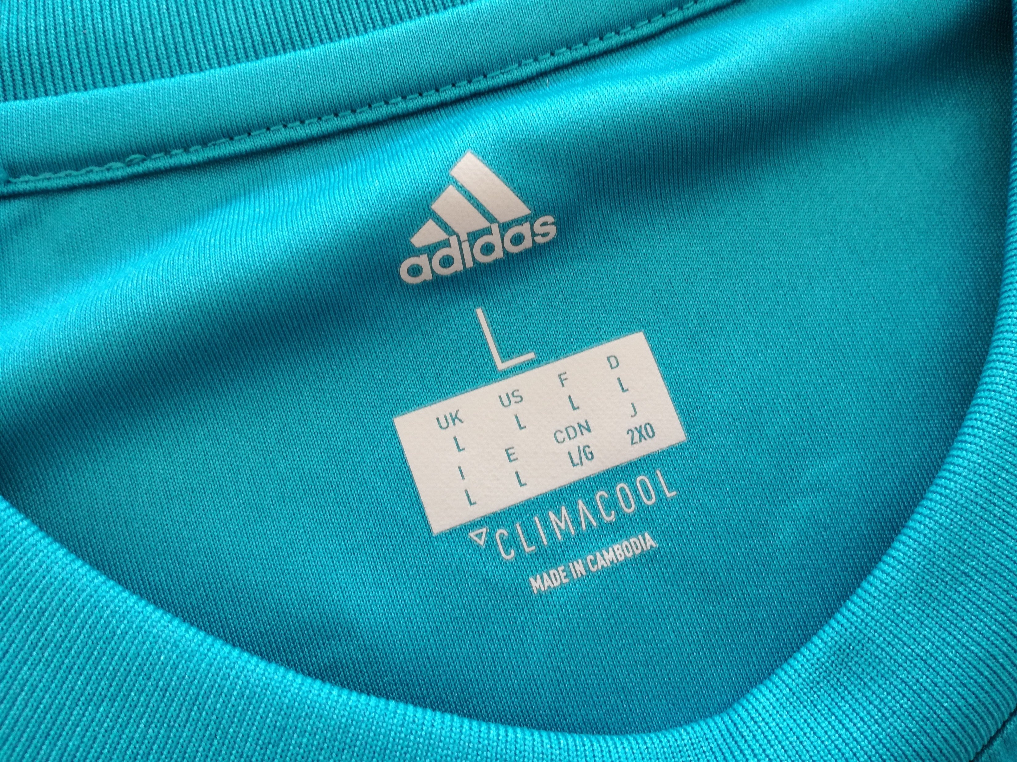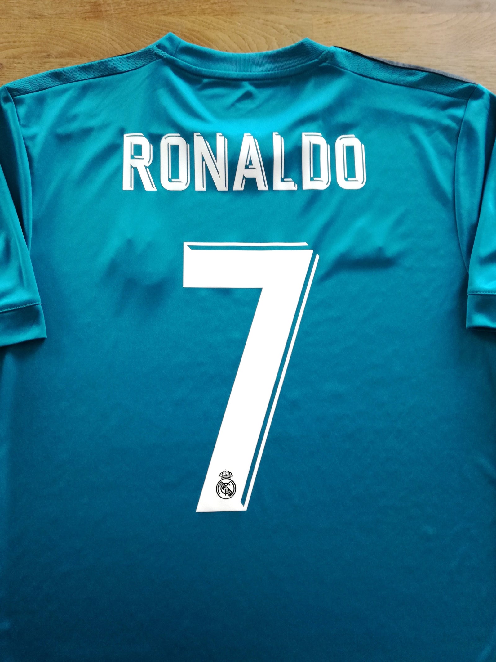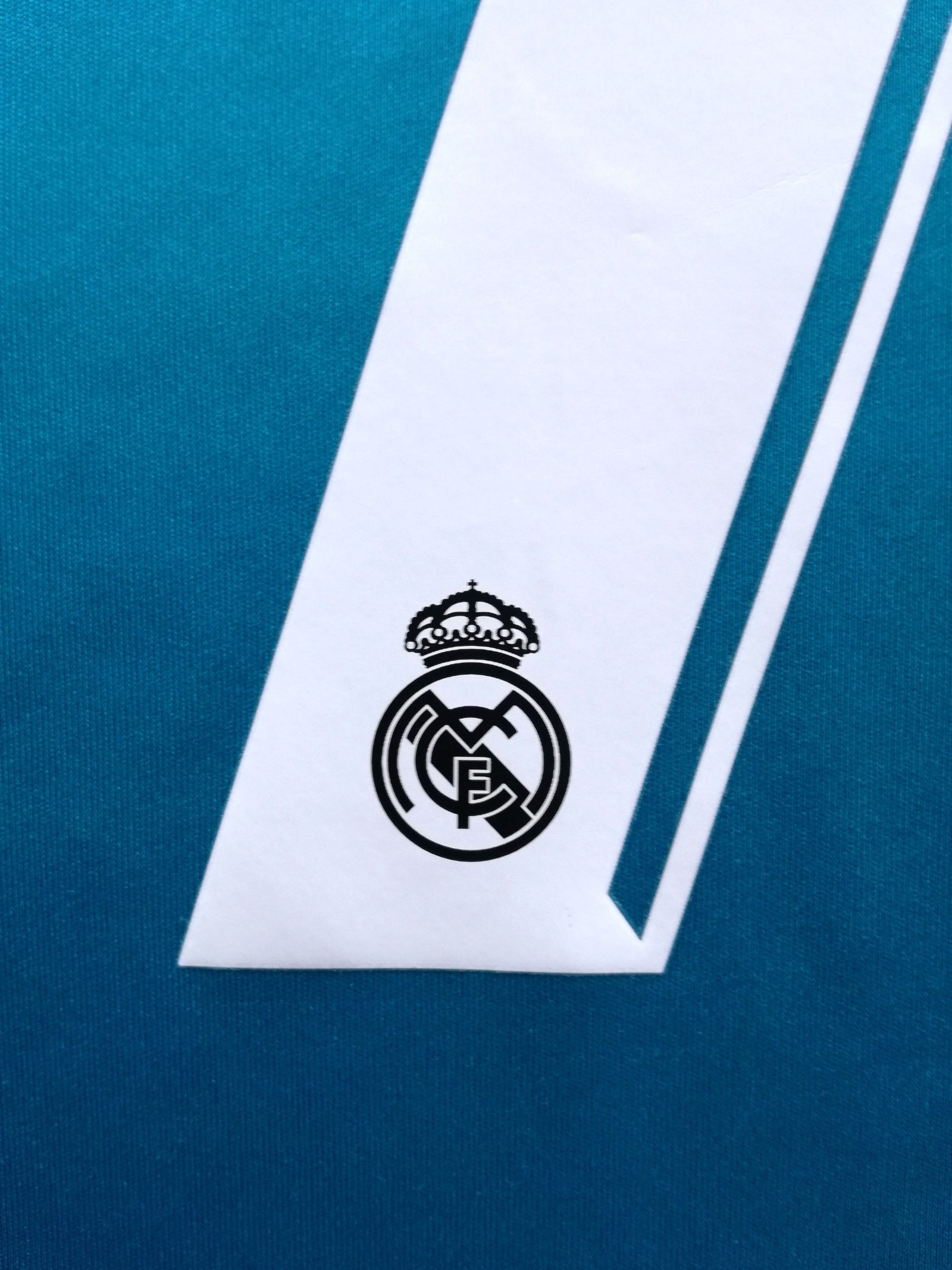 Original Adidas Real Madrid third football shirt from the 2017/18 season. Complete with Ronaldo #7 on the back of the shirt in official lettering.