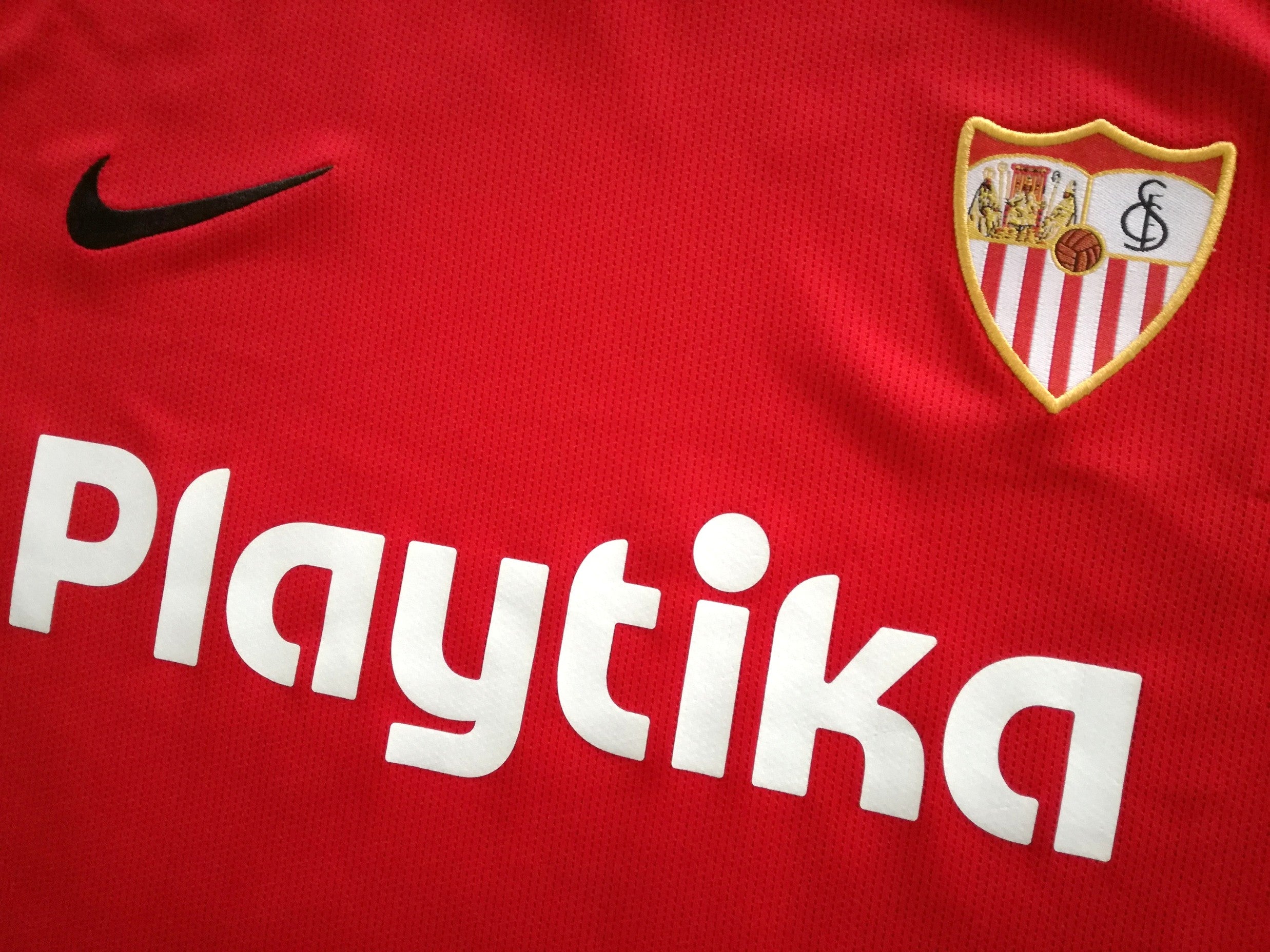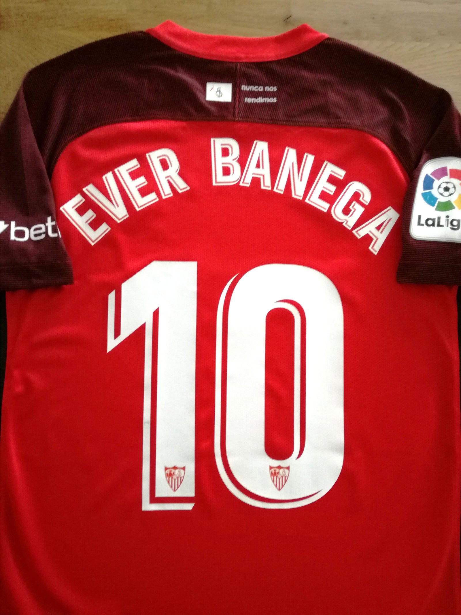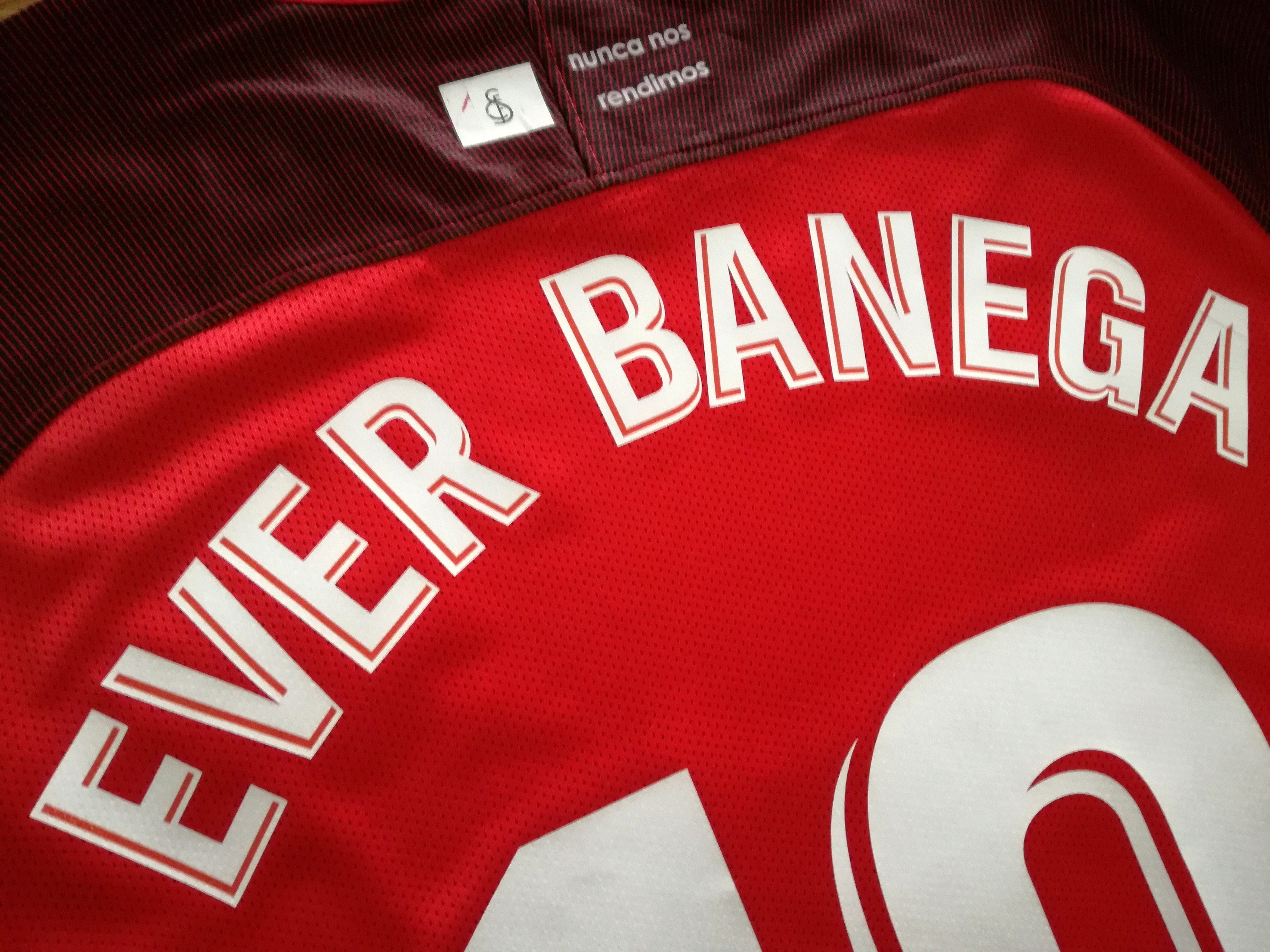 Official Nike Sevilla away football shirt from the 2018/19 season. Complete with Ever Banega #10 on the back of the shirt in official lettering, and original La Liga patch on the sleeve.