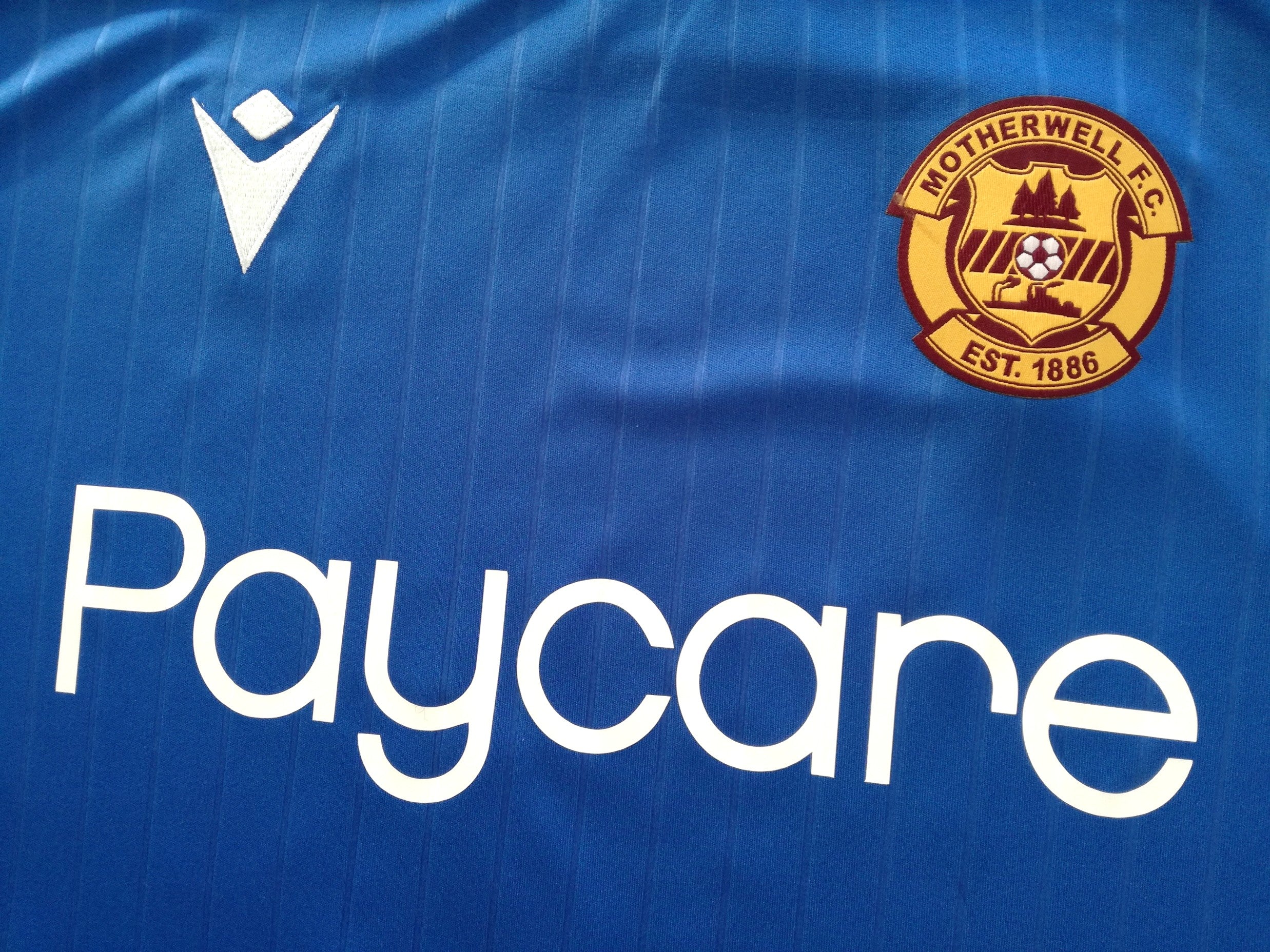 Official Macron Motherwell goalkeeper football shirt from the 2020/21 season. Complete with Chapman #34 o the back of the shirt in official SPL lettering, and original Scottish Premiership patch on the sleeve.