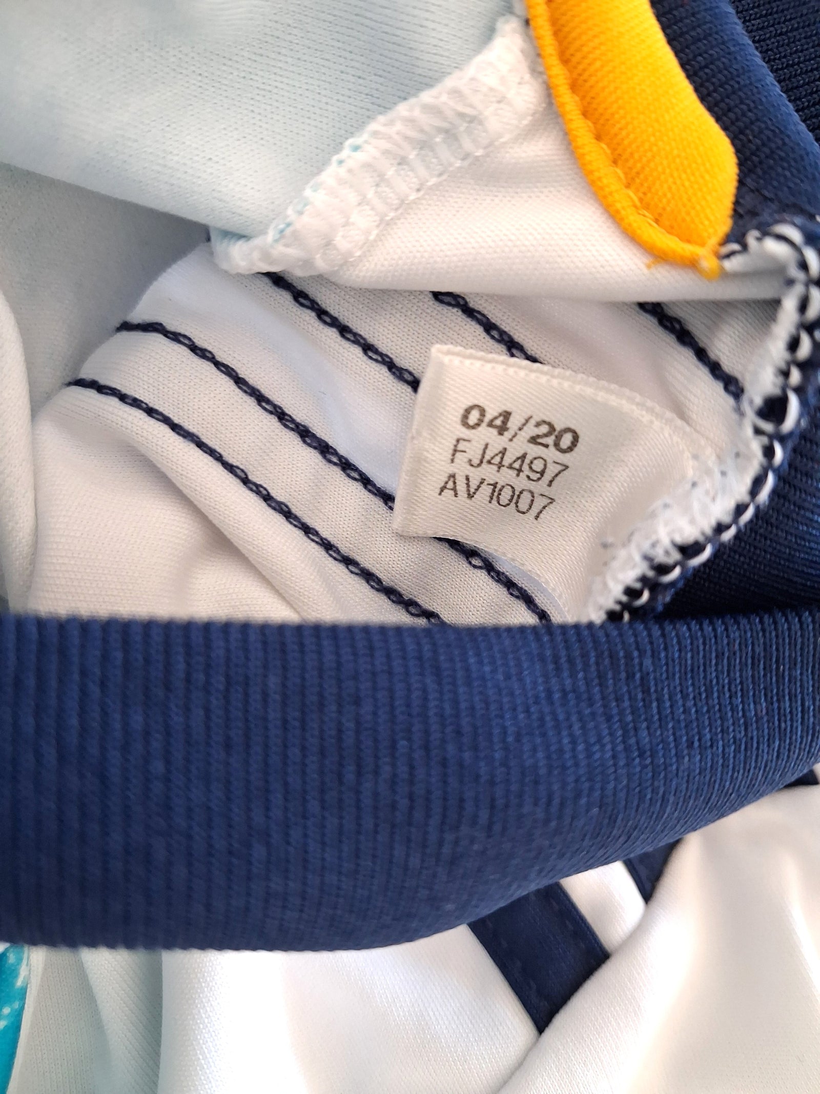 Colour: White & turquoise graphic, navy & amber trim