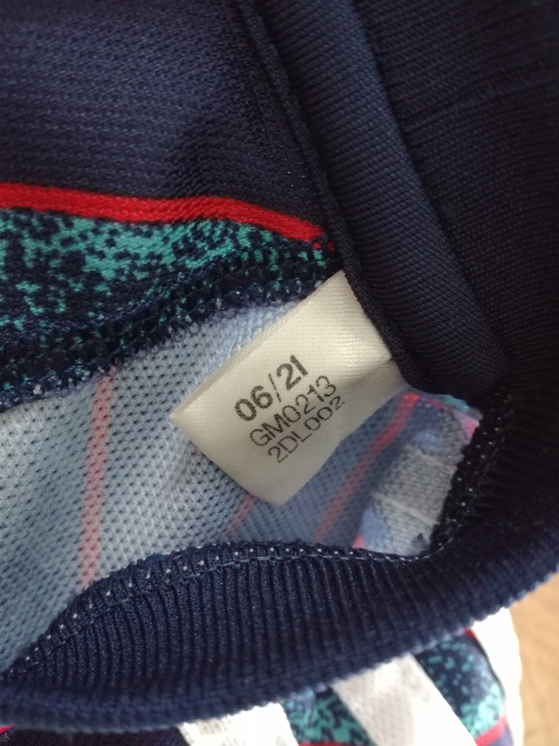 Colour: Navy & turquoise zig-zags, red & white trim