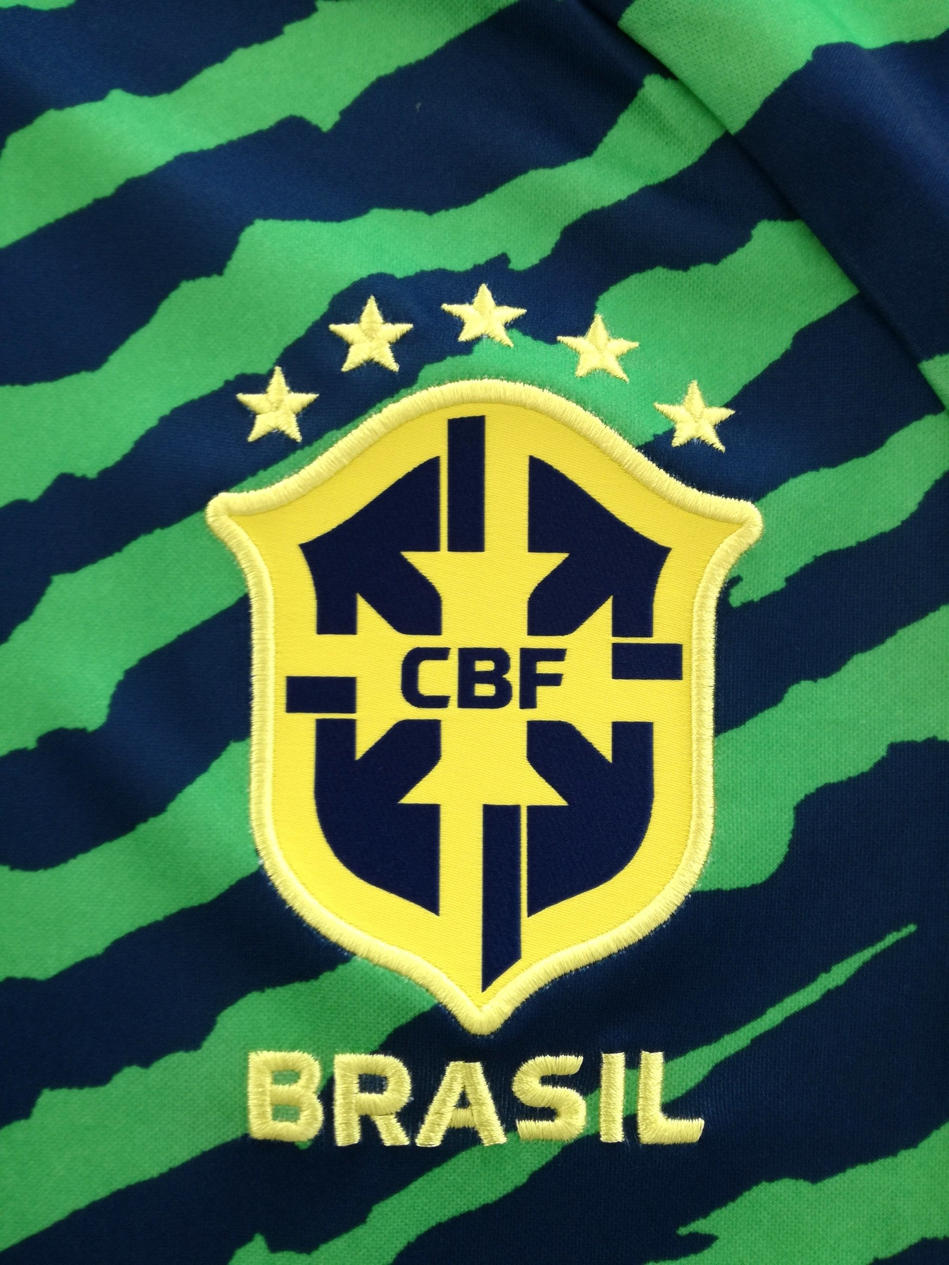 Official Nike Brazil pre-match football training shirt from the 2022/23 international season.