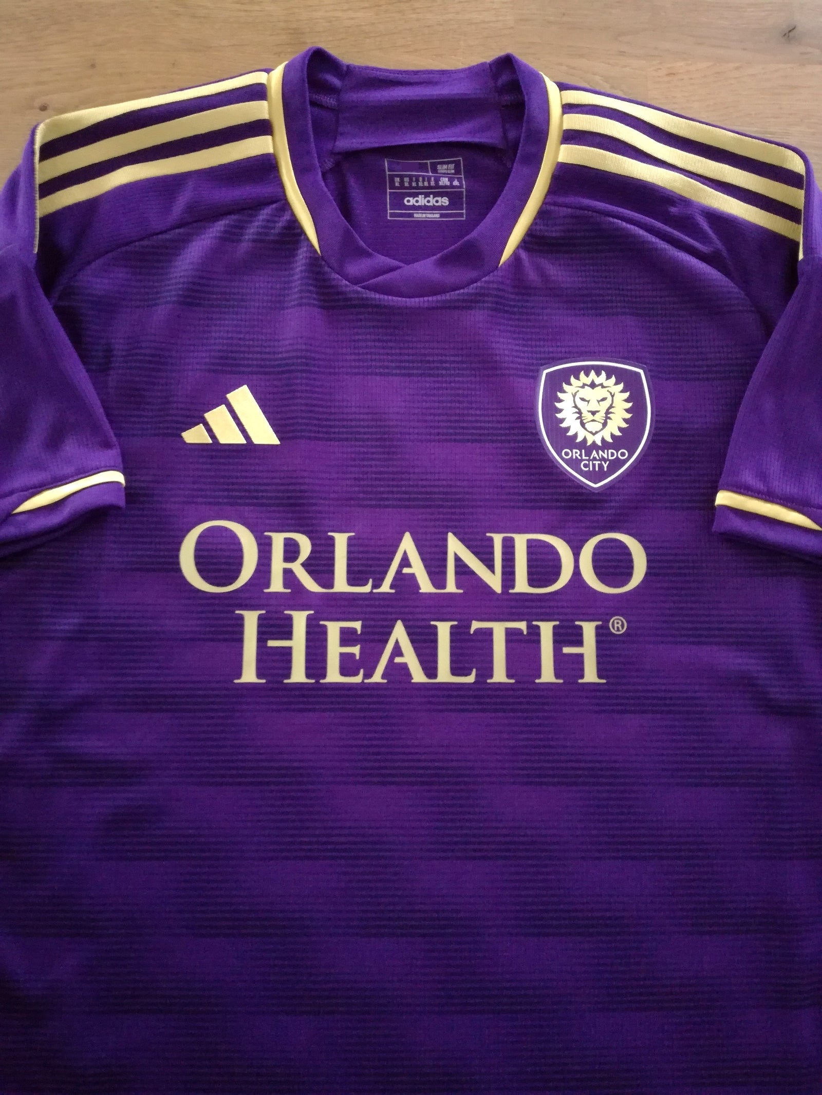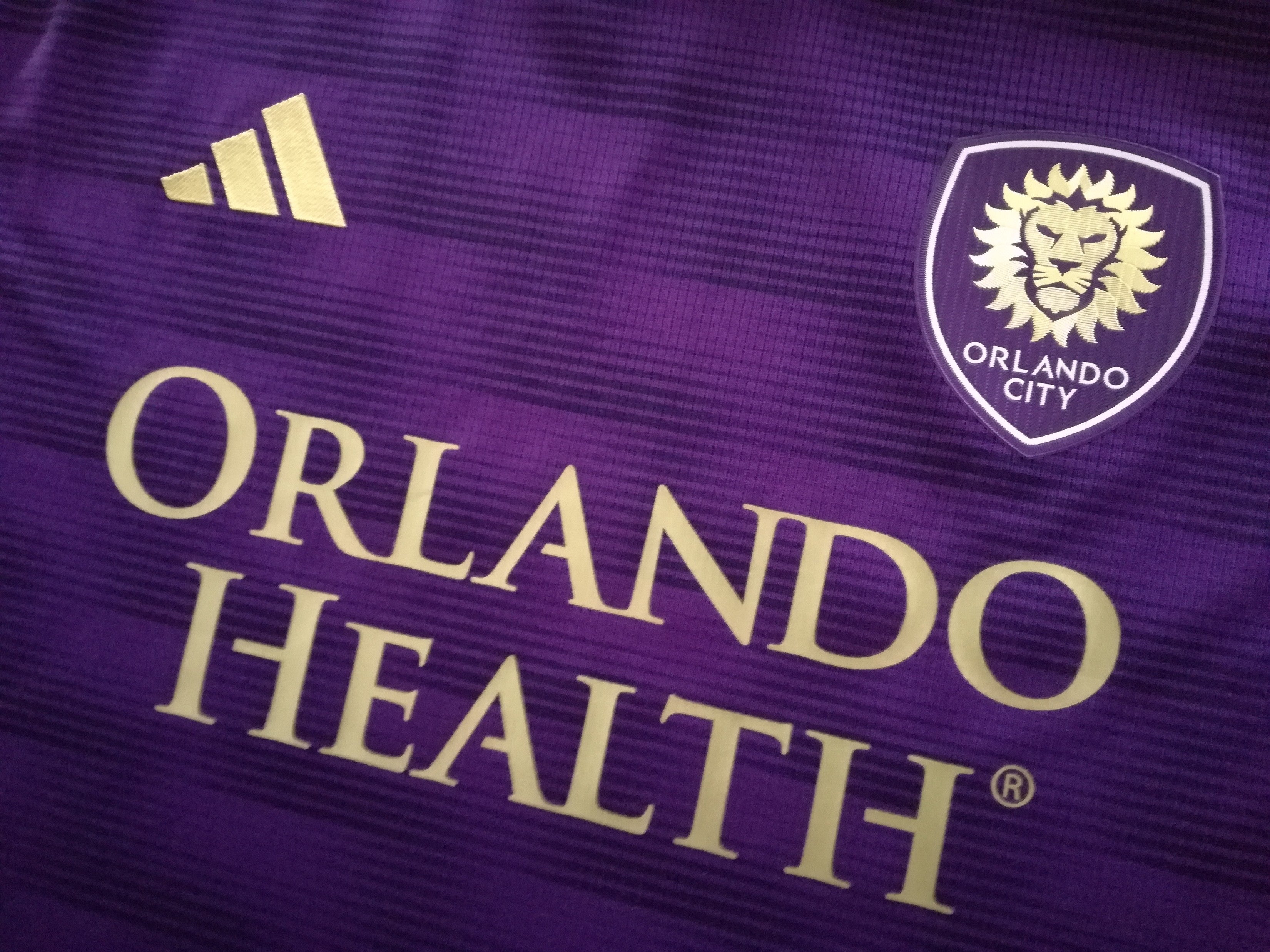 Official Adidas Orlando City home football shirt from the 2023 season.