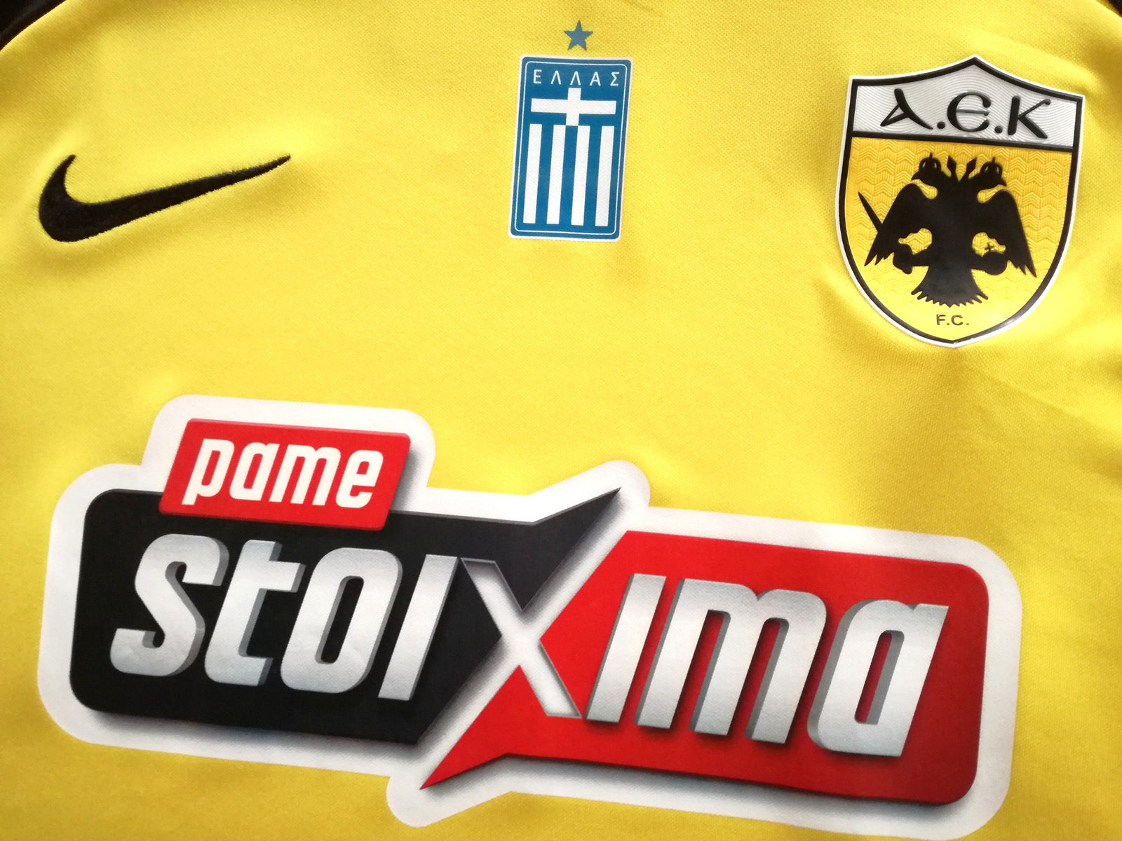 Official Nike AEK Athens home football shirt from the 2024/25 season. Complete with Greek league champions patch on the upper chest.